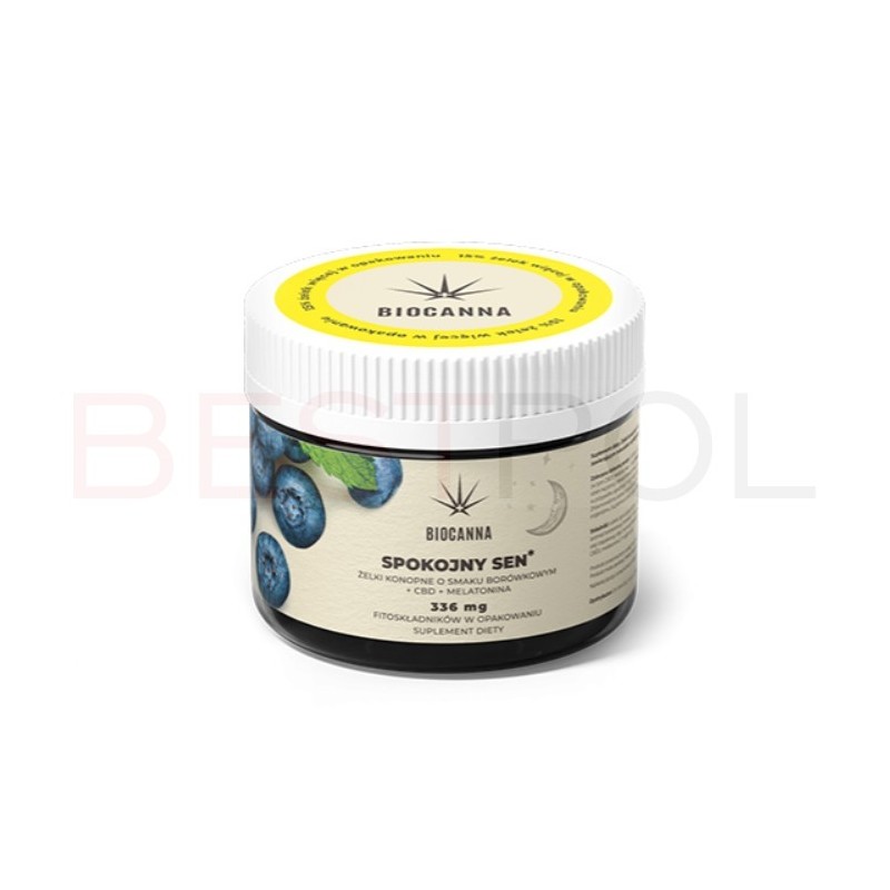 Poznaj żelki CBD Biocanna Spokojny Sen! Te smaczne, borówkowe żelki konopne to naturalne wsparcie w problemach z zasypianiem i jakością snu. Każda żelka zawiera 12 mg fitoskładników z konopi siewnej (w tym CBD) oraz 1 mg melatoniny – hormonu snu, który skraca czas potrzebny na zaśnięcie. Intensywny borówkowy smak i aromat sprawiają, że każda porcja to prawdziwa przyjemność. Produkt nie zawiera THC i jest przeznaczony wyłącznie dla dorosłych.